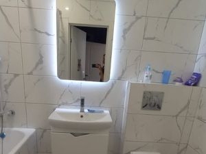 Квартира в прекрасном состоянии, евроремонт. В квартире , имеется всё необходимое для жизни.: 2 х спальный диван, с отделом для одеял, шифоньер с зеркалами, стиральная машинка, холодильник, телевизор ( на фото его нет ,(новый покупаю) , стулья стол на кухне, на балконе стеллаж . на кухне вытяжка и плита с духовым шкафом. Купить можно - на балконе , при условии что не про пахнет квартира табаком, в коридоре шкаф для верхней одежды, есть проводной интернет. есть сушилка для белья, швабра и средства для уборки, немного посуды.