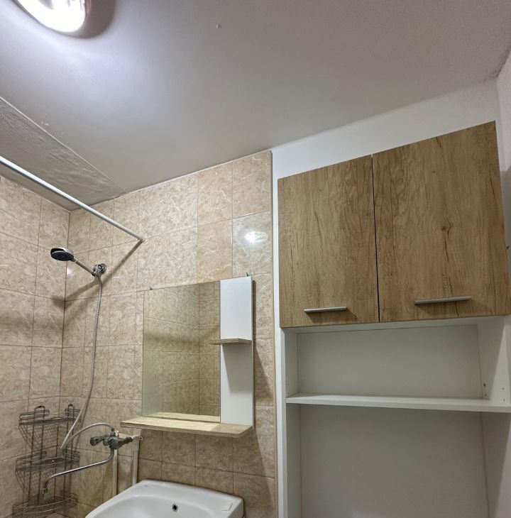 С/у: стиралка (новая, только приобрели), шкаф, тумба с зеркалом.