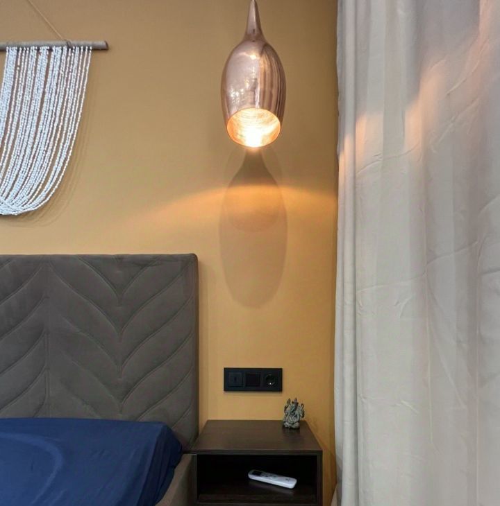 - Двуспальная кровать и прикроватные тумбы