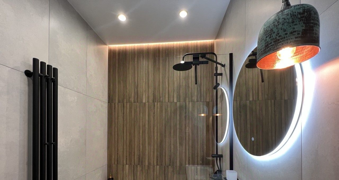 В сан узле установлена ванна с душевой стойкой.