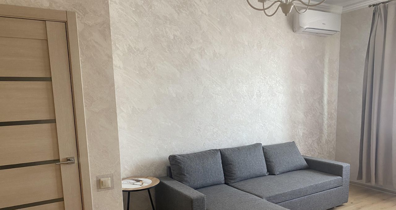 В квартире есть все необходимое для комфортного проживания: современная мебель и вся необходимая техника. Просторная кухня оборудована посудомоечной машиной, холодильником и кондиционером. В комнате установлен телевизор, а также есть стиральная машина. В ванной комнате установлена душевая кабина. Имеется лоджия, где можно отдохнуть на свежем воздухе.