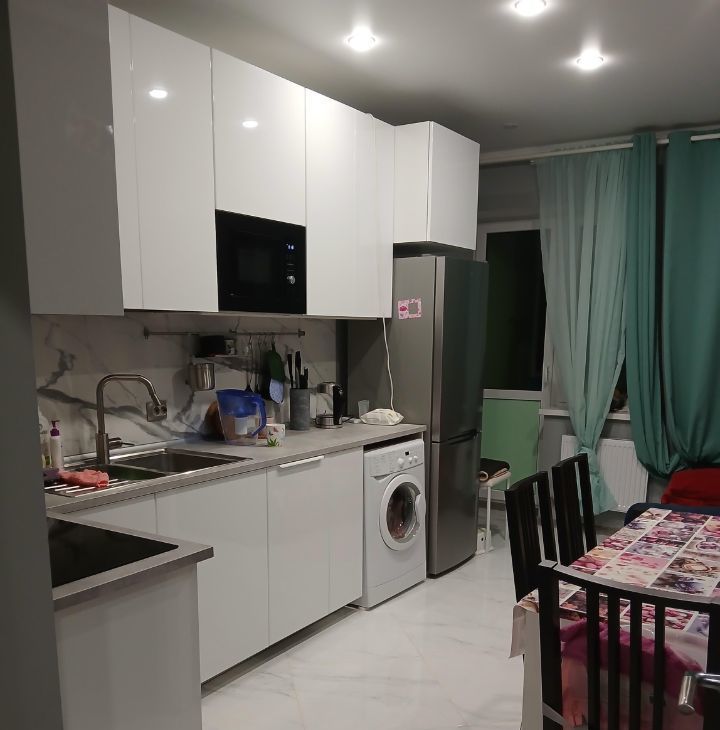 Продается уютная квартира с современным евро ремонтом. Просторная кухня площадью 16 м² оборудована всей необходимой техникой, включая холодильник и стиральную машину. В комнате установлен вместительный шкаф, а также диван, создающий комфортное пространство для отдыха. Санузел совмещенный, оформлен стильной плиткой, установлена душевая кабина.Во дворе детская площадка большая, детский садик, рядом магнит, пятерочка , хорошее местоположение , рядом много других школ и дс. Выезд во все районы.