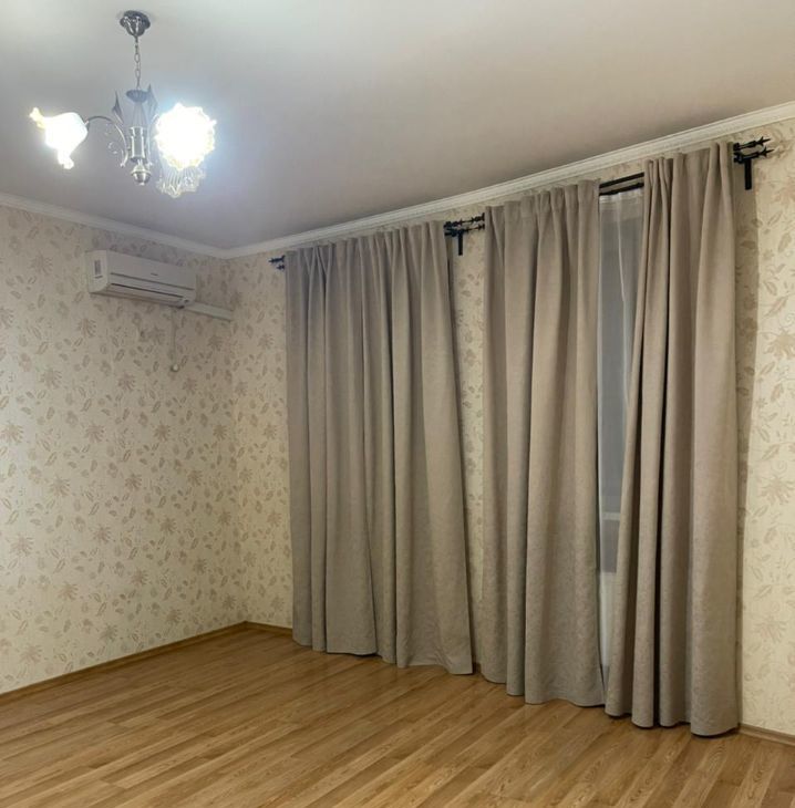 В комнате установлен кондиционер, а также имеется вместительная гардеробная-кладовая. Кухня очень просторная, оснащена кухонным гарнитуром, включая плиту. Из кухни выход на балкон. Санузел совмещенный.