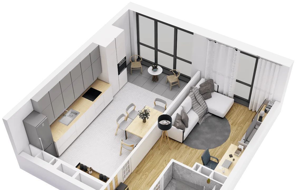 • удачная планировка с большими окнами (Много света)