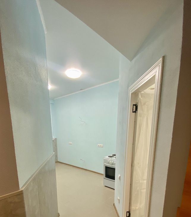 -стены покрашены фактурной краской в светлые тона.