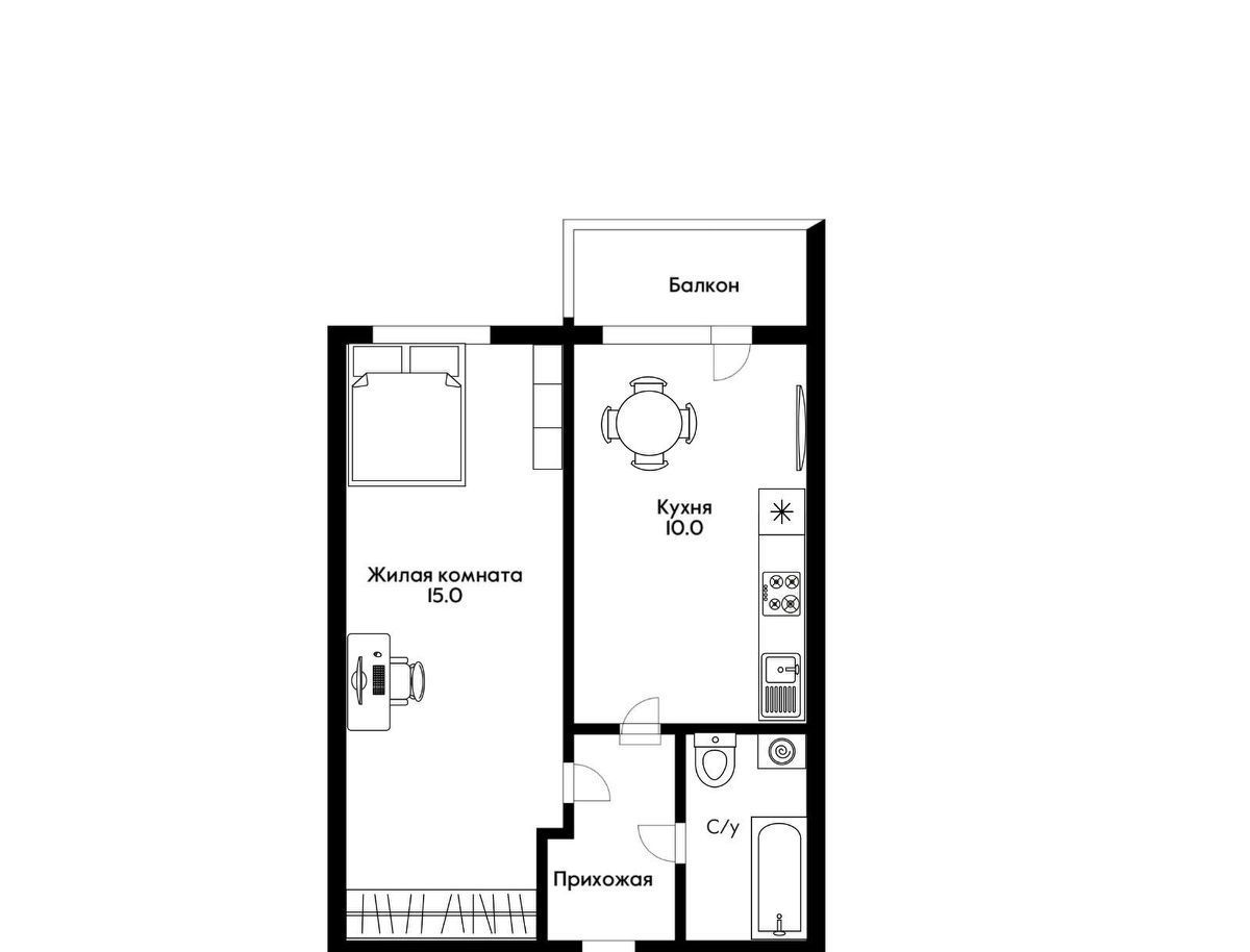 Студия Краснодарский край, Краснодар пос. Российский, ул. Ратной Славы, 29 (27.7 м²)