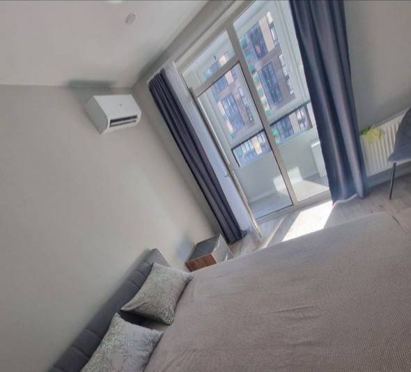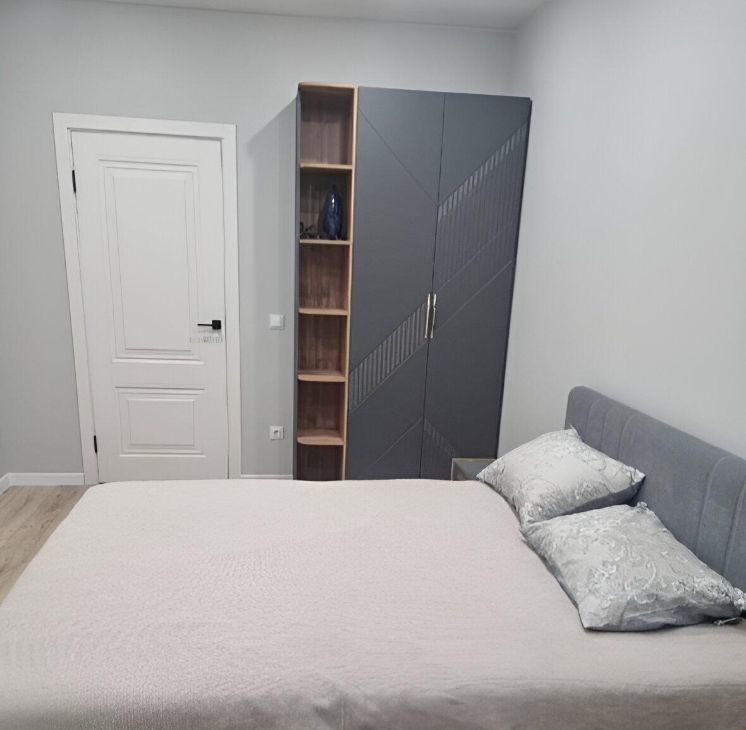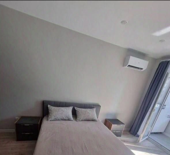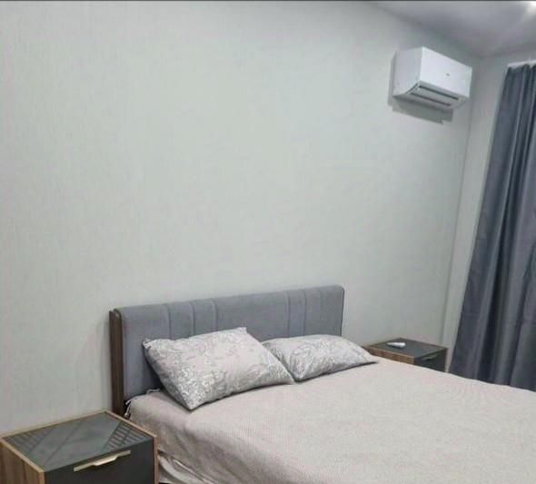 Спальная комната( шикарная кровать с ортопедическим матрасом Аскона , две тумбы прикроватные, шкаф для вещей, кондиционер, телевизор)