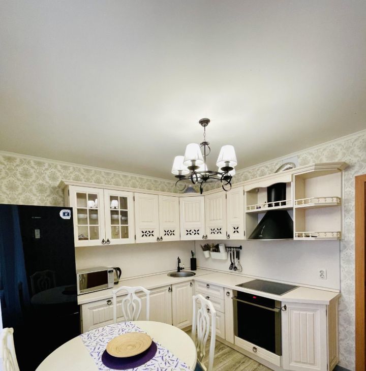 Есть вся необходимая техника:встраивая индукционная плита, духовка, стиральная машина, сплит-система, холодильник, телевизор. Проведен интернет.