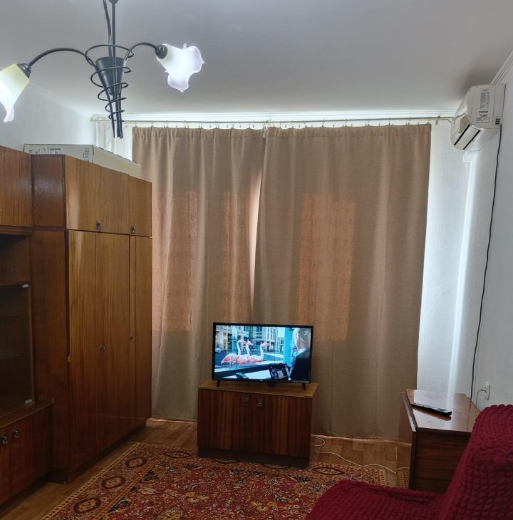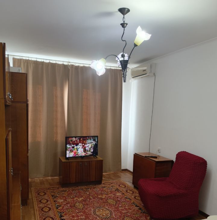 В квартире есть косметический ремонт, что позволяет сразу заехать и комфортно жить. На кухне и в комнате есть необходимая мебель. Для вашего удобства установлены кондиционер, холодильник, телевизор и стиральная машина. Ванная комната оборудована ванной. В квартире также имеется балкон, где можно наслаждаться свежим воздухом. Курение и проживание с животными запрещено!