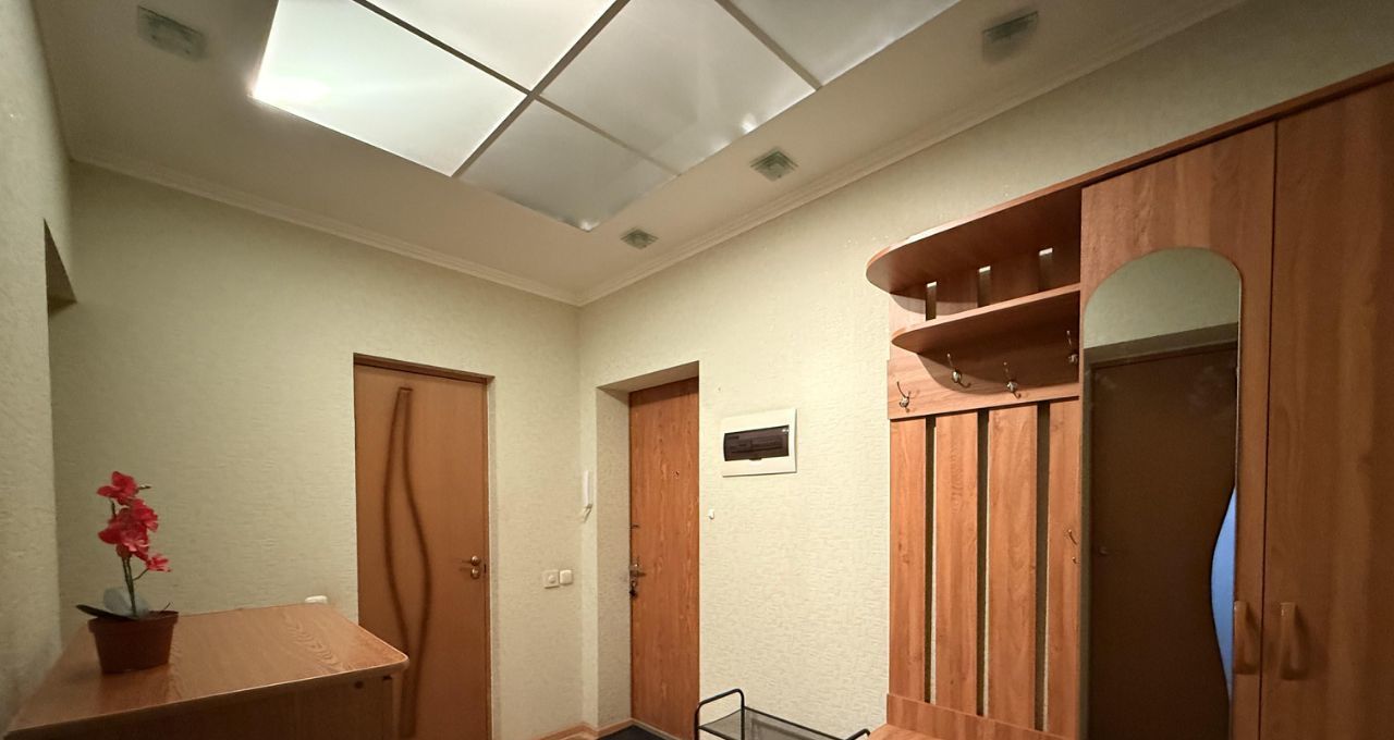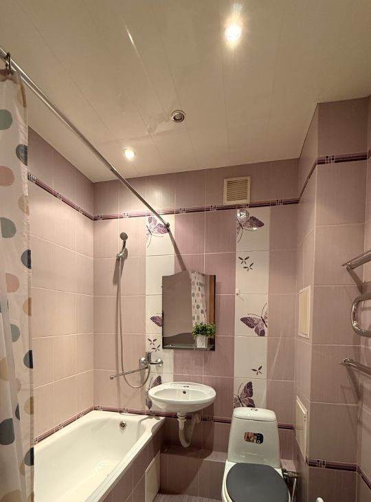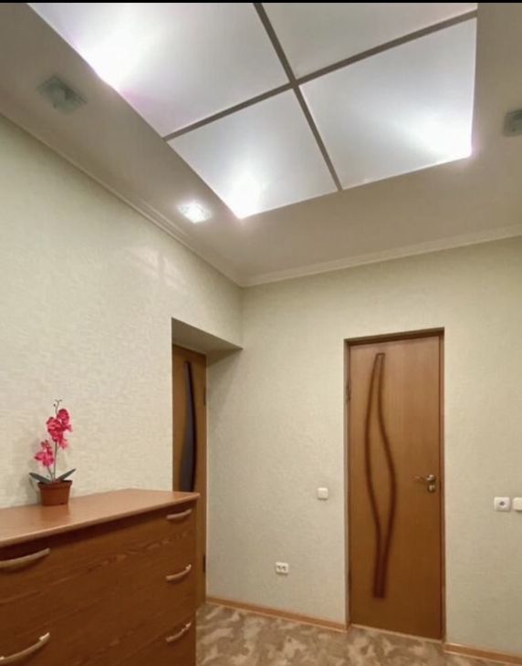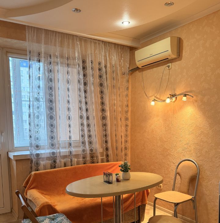 Площадь 45 м2, 5/10 этаж, есть вся необходимая мебель и техника, раскладной диван в комнате и на кухне (смотрите фото).