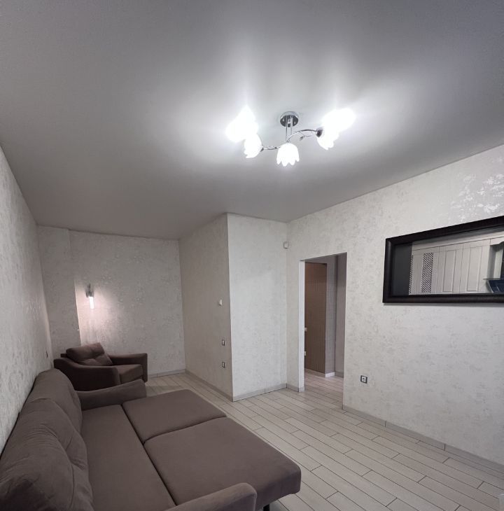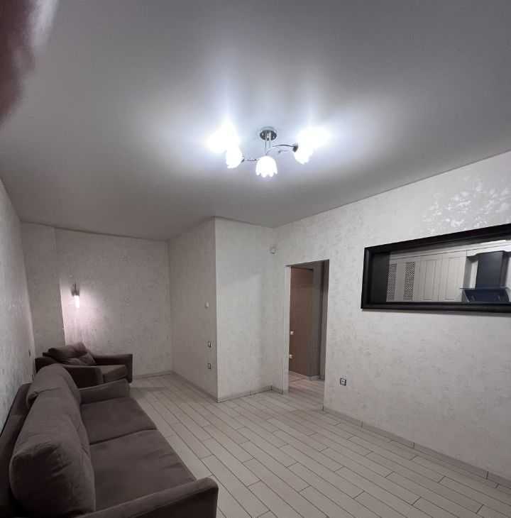 В квартире сделан современный евроремонт. Просторная кухня площадью 15 кв. м оборудована всей необходимой мебелью и техникой, включая холодильник и кондиционер. В комнате также есть мебель и телевизор. Высокие потолки 2.7 метра создают ощущение простора. Санузел совмещённый, в ванной установлена полноценная ванна. Из окон открывается вид на тихий двор, что обеспечивает дополнительный уют и спокойствие.