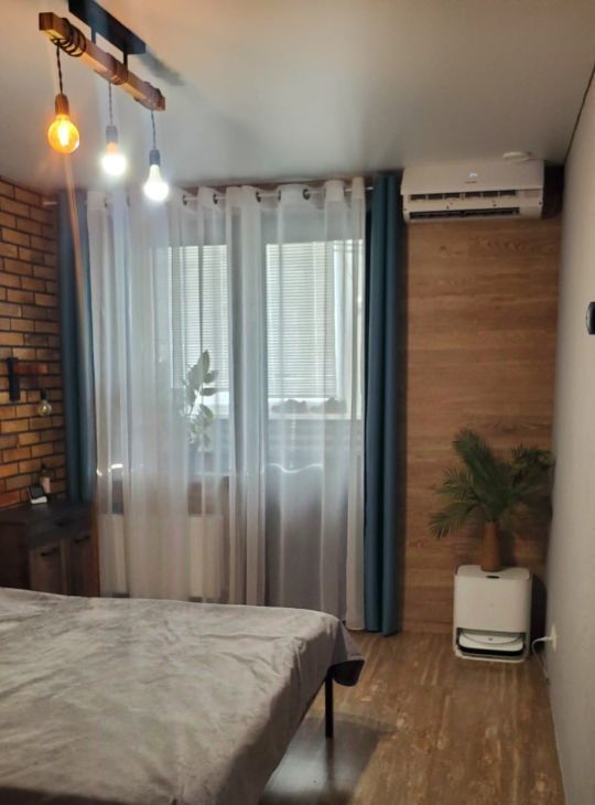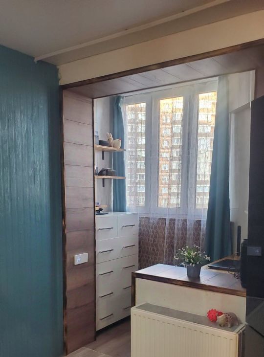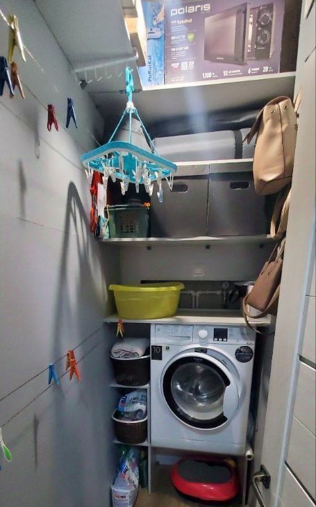 Выполненный ремонт позволит заселиться уже сразу после покупки. В квартире совмещенный санузел и небольшая кладовая, где установлена стиральная машина и можно сушить белье.