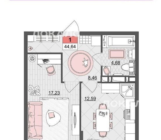 1-к кв. Краснодарский край, Краснодар Стахановская ул., 1/5к1 (44.0 м²)