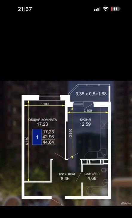 Сдаем в аренду уютную однокомнатную квартиру с дизайнерским ремонтом. Общая площадь квартиры составляет 44 кв. м, жилая площадь — 17 кв. м, кухня — 12 кв. м. Квартира расположена на 13-м этаже 19-этажного дома. Окна выходят во двор, что обеспечивает тишину и комфорт.