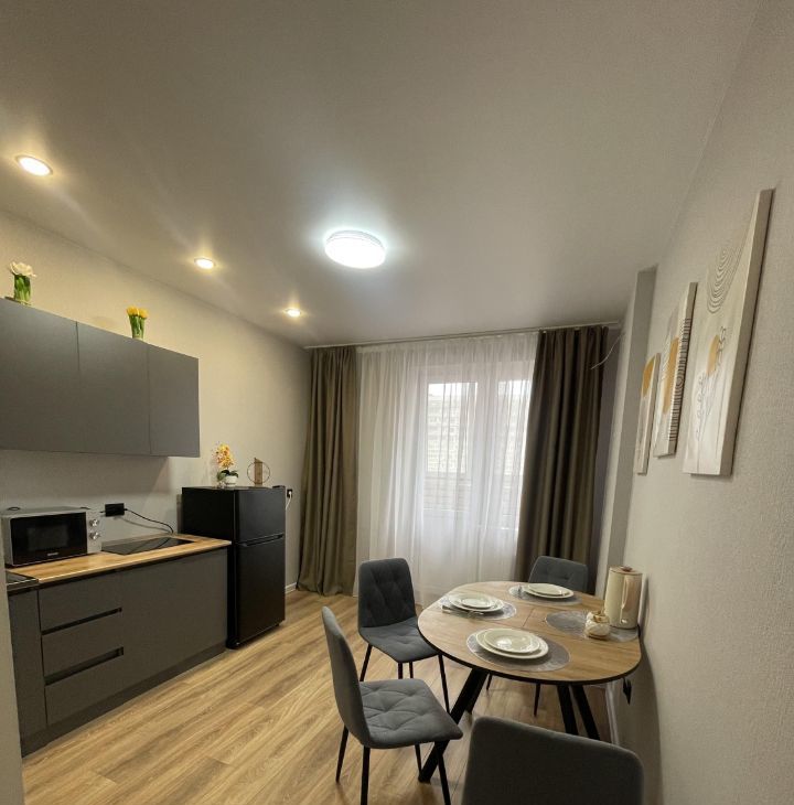 Сдам КЛАССНУЮ квартиру на длительный срок в ЖК Лучший !!! полноценная 1-к квартира, сделан свежий ремонт, есть вся необходимая НОВАЯ мебель, кухонный гарнитур, посуда, холодильник, микроволновая печь, плита, стол, стулья, телевизор, wi-fi, тумба, кровать, раскладной диван, кондиционер, утюг, гладильная доска, вся необходимая посуда. квартира очень уютная и просторная., залог 30000 можно в рассрочку на 3 месяца. Коммунальные оплата по счетчикам+интернет.