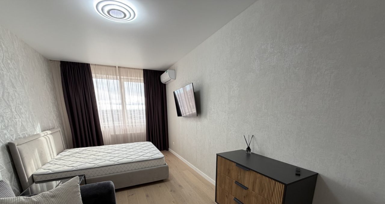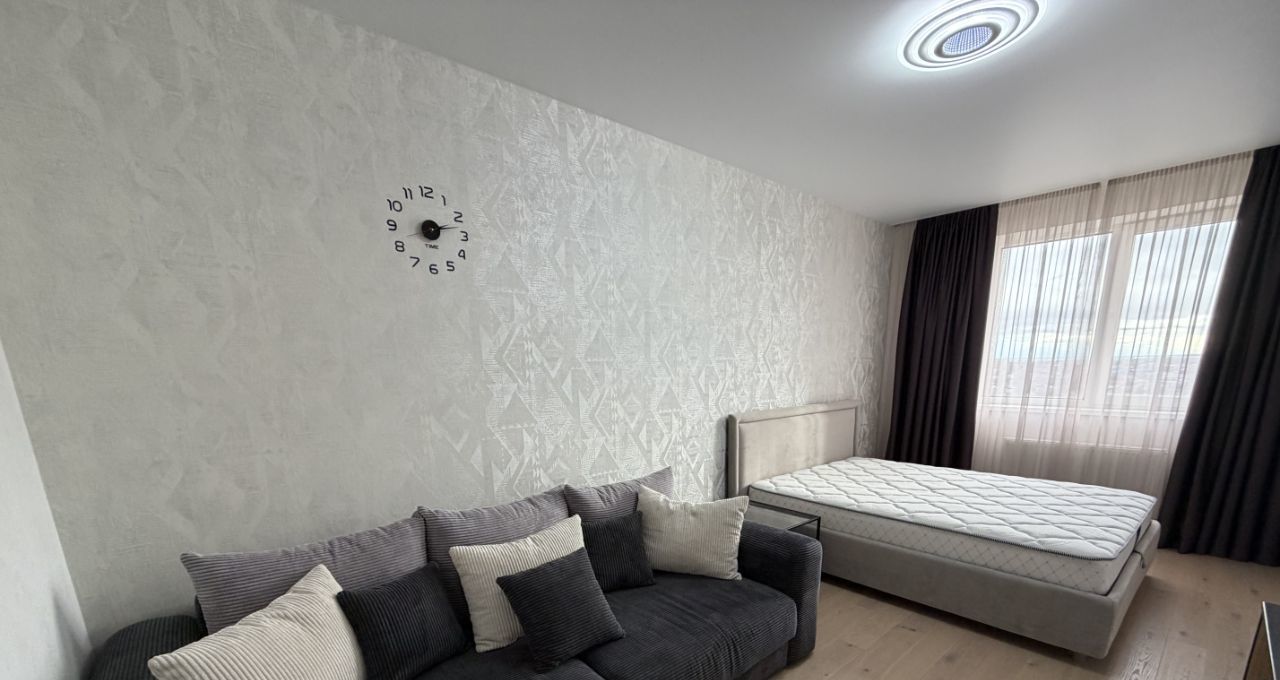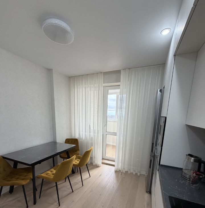Продается уютная однокомнатная квартира площадью 41,4 кв. м на 9 этаже современного 17-этажного дома, построенного в 2011 году. Просторная жилая площадь в 17 кв. м и кухня 12,4 кв. м предоставляют достаточно места для комфортного проживания. Высота потолков составляет 2,8 метра, а окна выходят во двор, что обеспечивает тишину и уют. Вид на набережную и речку.