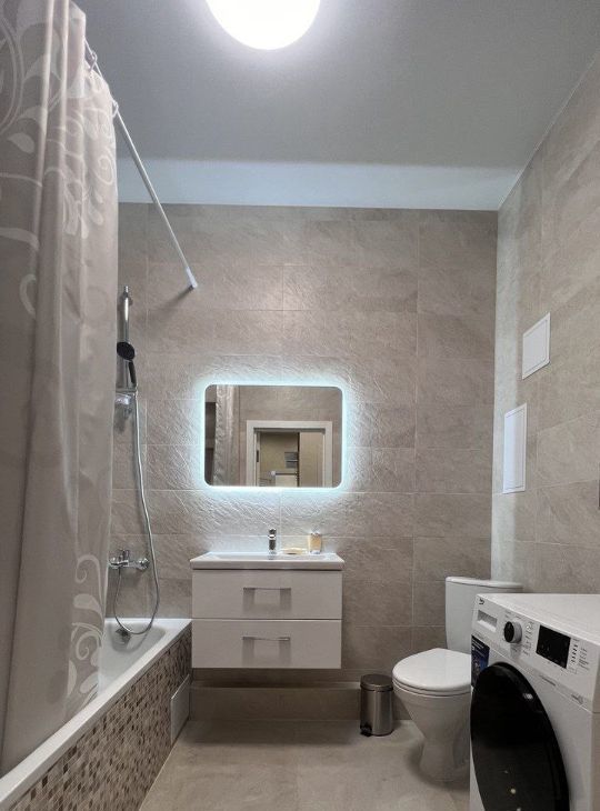 Сделан качественный современный ремонт в светлых тонах! Квартира полностью обустроена и укомплектована абсолютно всем необходимым для жизни. Полностью вся новая мебель, просторная гардеробная в прихожей, новая бытовая техника: сплит-система, ЖК-телевизор, стиральная машина-автомат, СВЧ-печь, электрочайник.