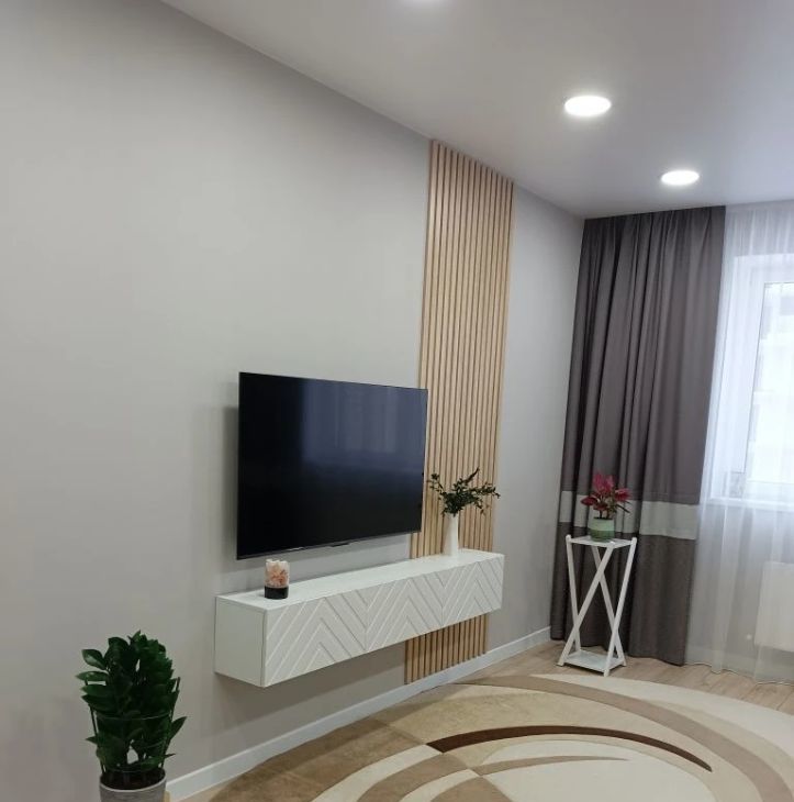 Квартира радует современным дизайнерским ремонтом, выполненным с использованием качественных материалов и со вкусом подобранной цветовой гаммой. Установлена вся необходимая мебель и техника, что позволяет сразу заехать и жить. Санузел совмещенный и оформлен в актуальном стиле, что добавляет дополнительный комфорт.