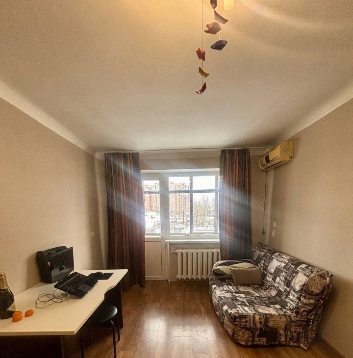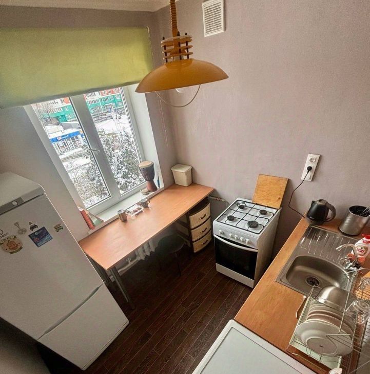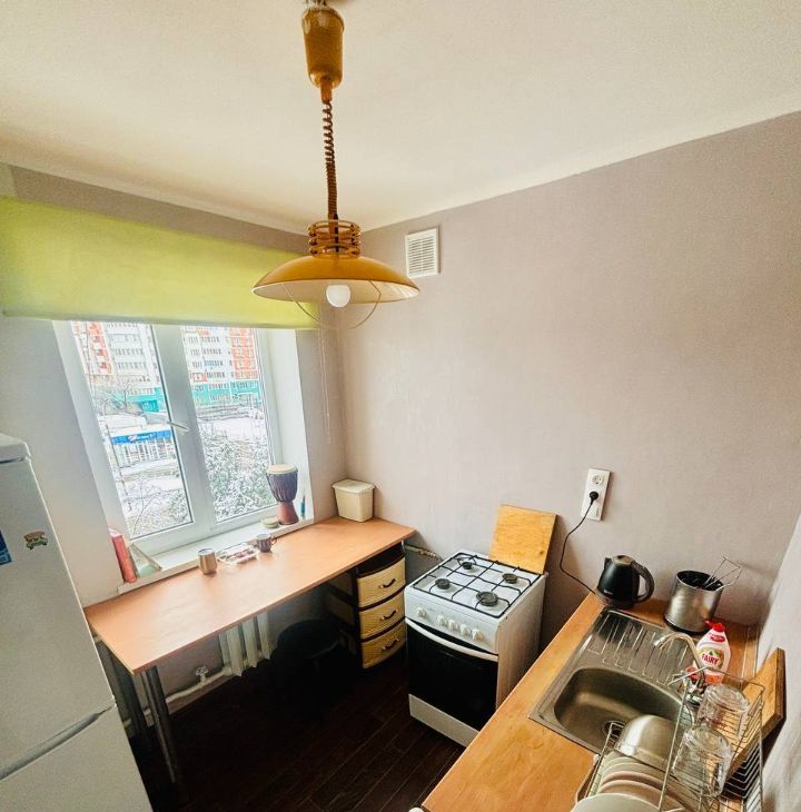 Квартира на пятом этаже, сделан косметический ремонт, все чисто. Газовая плита. Совмещенный санузел. Набор необходимой техники (стиральная машина, диван, шкаф)