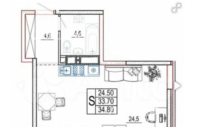 1-к кв. Краснодарский край, Краснодар Старокубанская ул., 123А (34.8 м²)