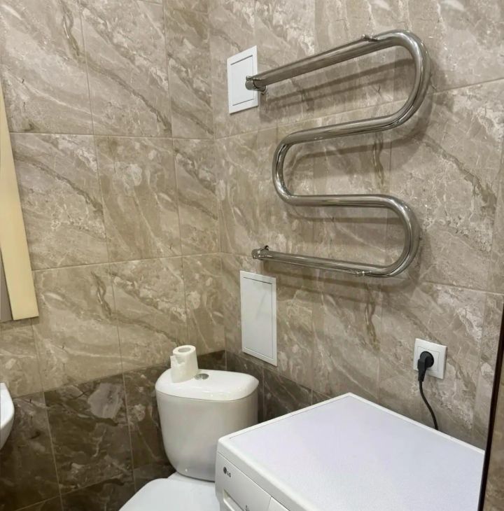Санузел совмещенный, оборудован современной сантехникой и стиральной машиной. Из окон открывается приятный вид на зеленый двор с детской площадкой. В подъезде есть пассажирский и грузовой лифты, а также мусорная площадка с раздельными контейнерами.
