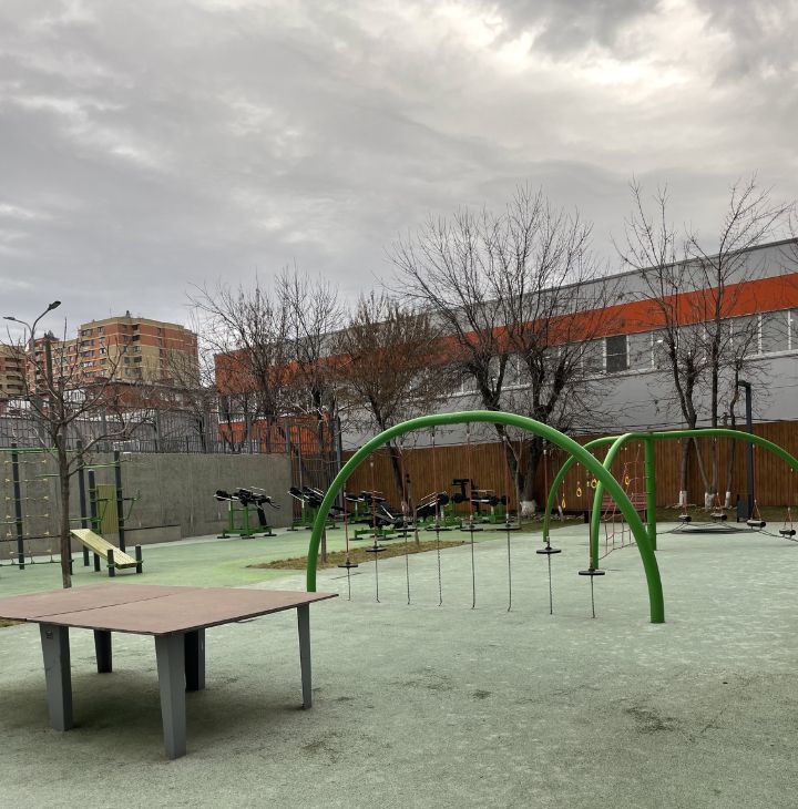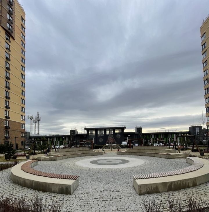 На территории двора имеются беседки, места для отдыха, фонтан, а также детская площадка, спортивная площадка и место для выгула собак.