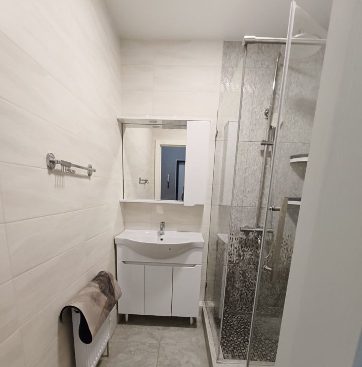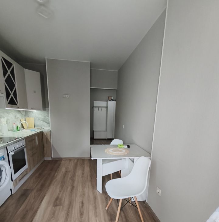 Сдаётся уютная однокомнатная квартира с евроремонтом в доме 2022 года постройки. Общая площадь квартиры составляет 41 кв.м, из которых 16 кв.м - жилая площадь, а просторная кухня занимает 14 кв.м. Квартира расположена на 12-м этаже 19-этажного дома. Высокие потолки (2.68 метра) и окна, выходящие на две стороны - улицу и двор, придают квартире ощущение простора и света.