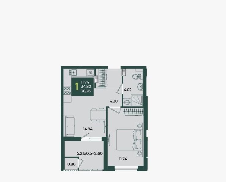 1-к кв. Краснодарский край, Краснодар ул. Адмирала Макарова, 5 (38.65 м²)