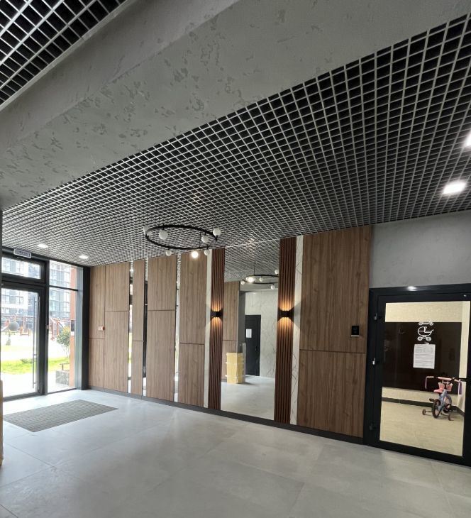 * Инфраструктура: подъезды оборудованы колясочной, консьержем, пассажирским и грузовым лифтами. Безопасная территория и ухоженные зоны отдыха с зелеными насаждениями делают проживание приятным.