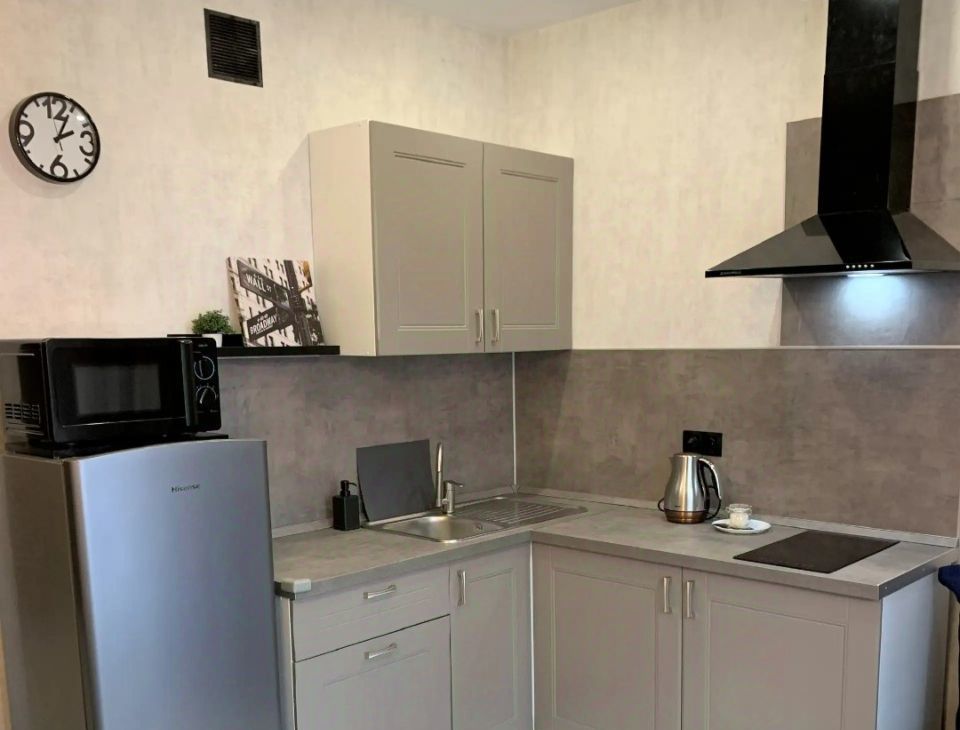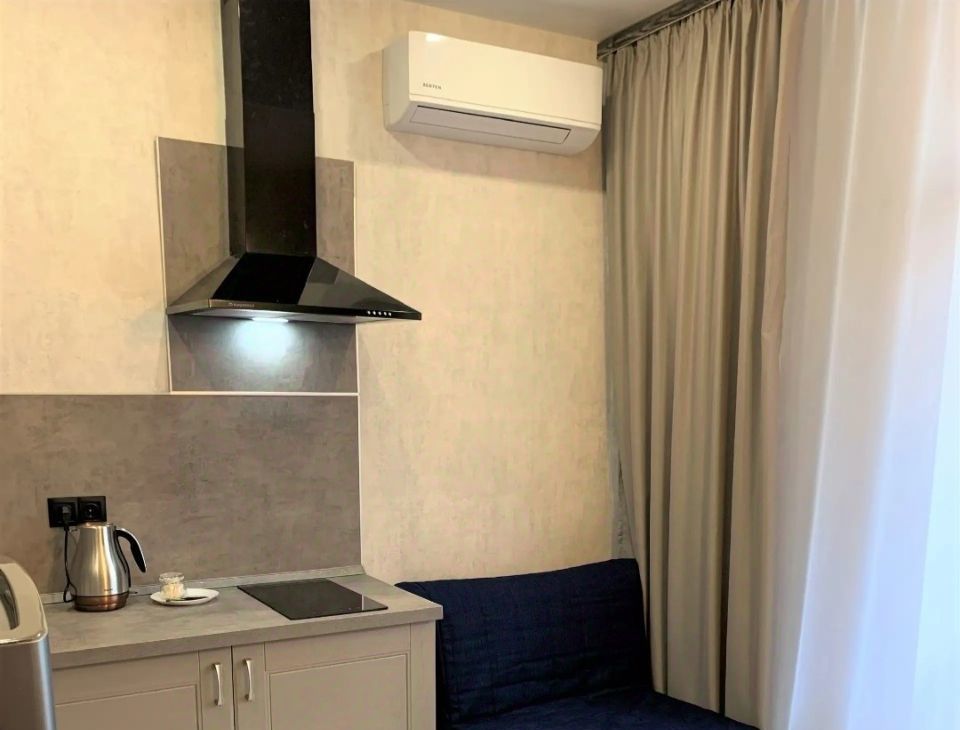 Квартира полностью готова к проживанию. В комнате и на кухне есть вся необходимая мебель. Вас порадует современная техника: кондиционер, холодильник, телевизор и стиральная машина. Санузел совмещённый, оборудован ванной. Также имеется балкон, где можно наслаждаться свежим воздухом и видом на двор.