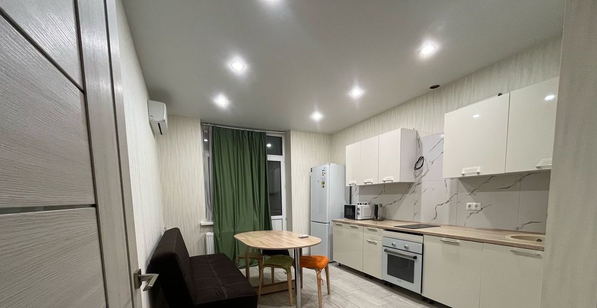 Сдаётся в аренду уютная однокомнатная квартира площадью 45.6 кв. м на 11 этаже 18-этажного дома, расположенного на улице Боспорская, 8 в Краснодаре. Дом построен в 2020 году, и здесь вас ждёт комфорт и современное окружение. Высокие потолки 2.75 метра и просторная кухня 14 кв. м создают ощущение простора и свободы.