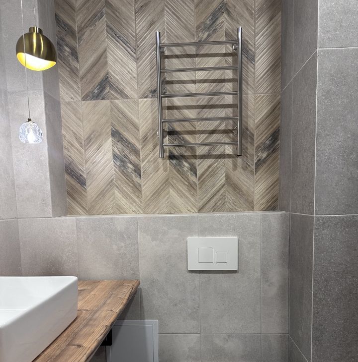 Совмещенный санузел выполнен в современном стиле с качественной отделкой. В квартире установлен теплый пол, в санузле и на балконе.