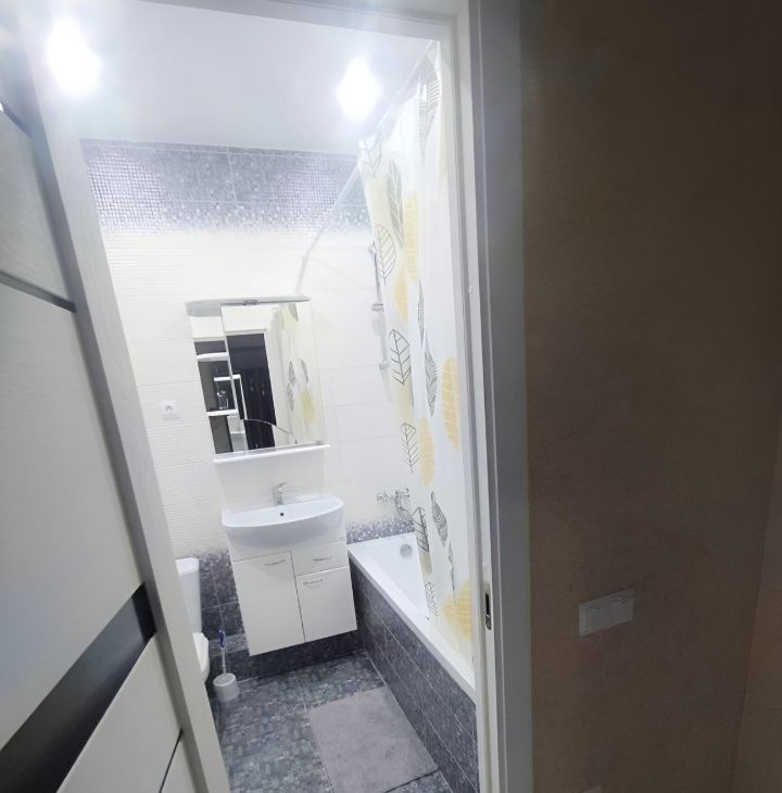 Сдаётся уютная однокомнатная квартира с евроремонтом в современном доме 2018 года постройки. Общая площадь квартиры составляет 40 кв. м., из которых 20 кв. м. занимает жилая зона и 13 кв. м. кухня. Квартира расположена на 17 этаже 24-этажного дома, поэтому из окон открывается прекрасный вид на улицу. Высота потолков 2.8 метра, что придаёт пространству дополнительную свободу и свет.