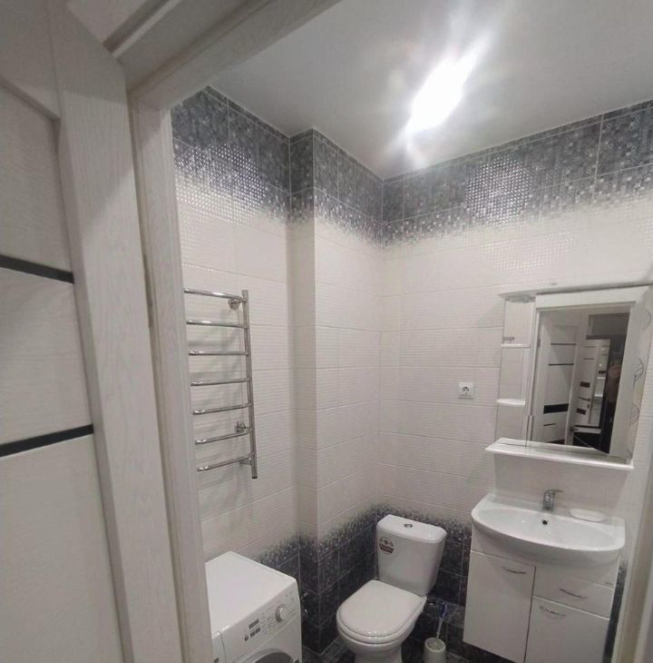 В квартире есть всё необходимое для комфортного проживания. В комнате и на кухне установлена современная мебель, а техника включает кондиционер, холодильник, телевизор и стиральную машину. В ванной комнате установлена ванна, что позволит вам расслабиться после насыщенного дня. Санузел совмещённый, что удобно для проживания одного или пары.
