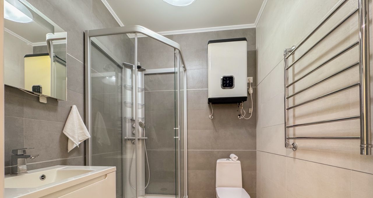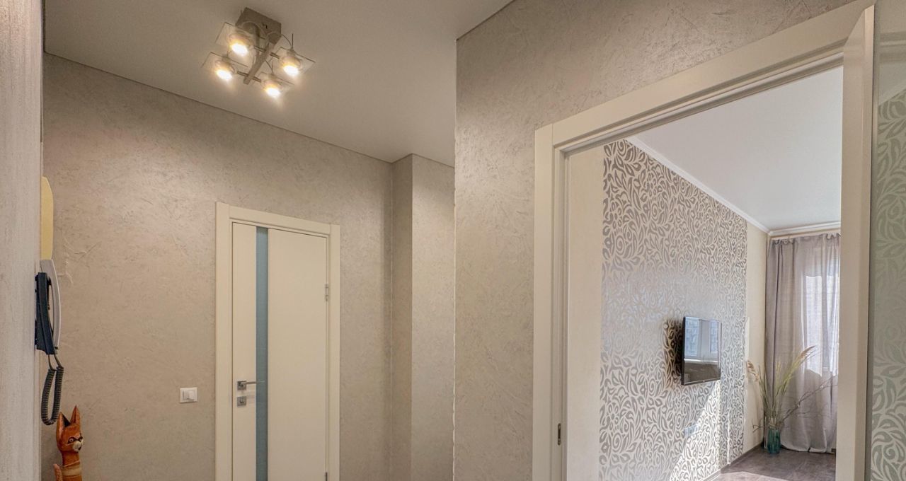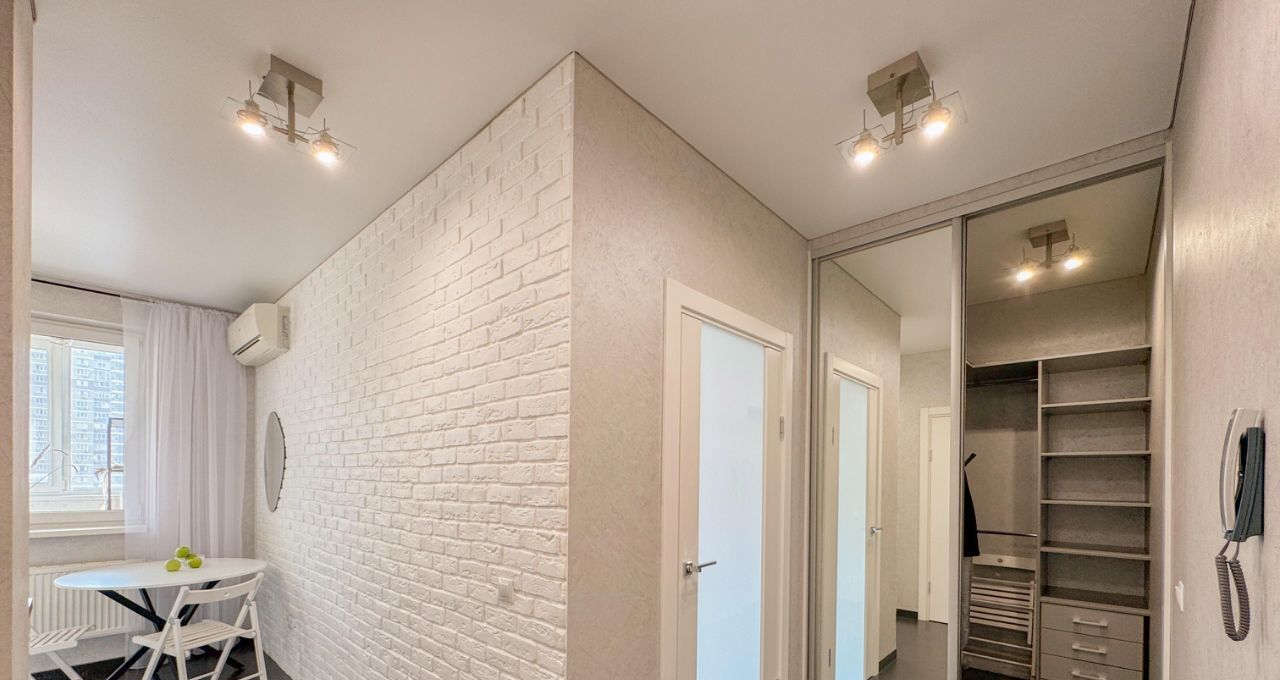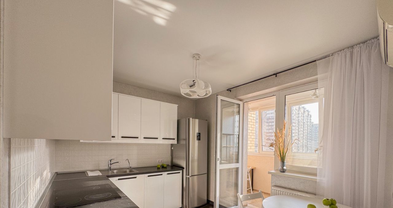 В квартире сделан качественный ремонт, имеется вся необходимая техника. Кухонный гарнитур IKEA. Оборудована гардеробная комната для хранения вещей. В ванной и на лоджии установлен теплый пол.