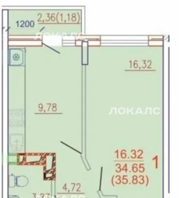 1-к кв. Краснодарский край, Краснодар ул. Евгении Жигуленко, 25к3 (35.83 м²)