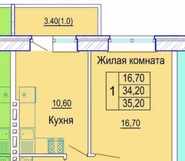 1-к кв. Краснодарский край, Краснодар ул. Евгении Жигуленко, 11к1 (35.0 м²)