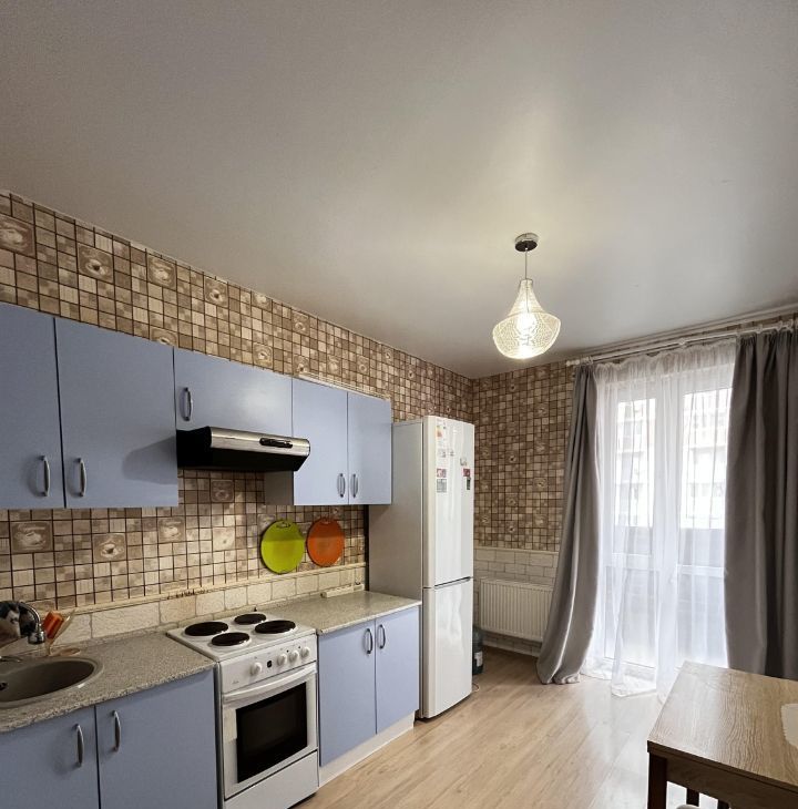 В квартире имеется холодильник , стиральная машинка , кухонный гарнитур, диван раскладывается , получается полноценное спальное место.