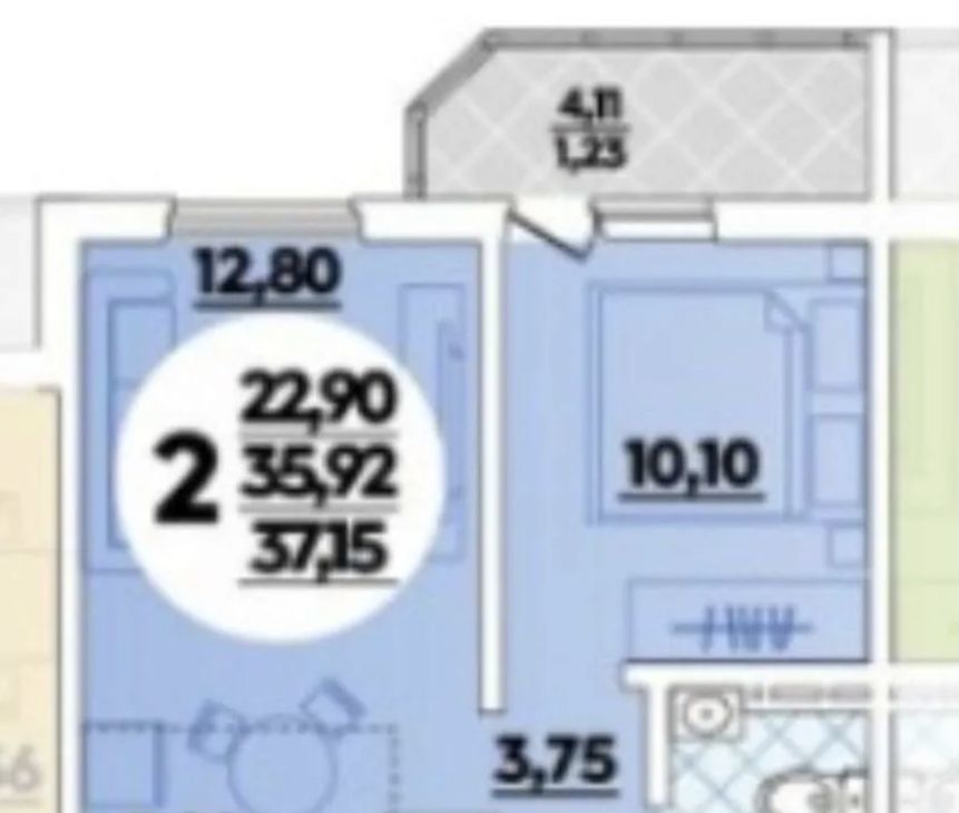 1-к кв. Краснодарский край, Краснодар ул. Имени Героя Советского Союза Якова Кобзаря, 2 (37.6 м²)