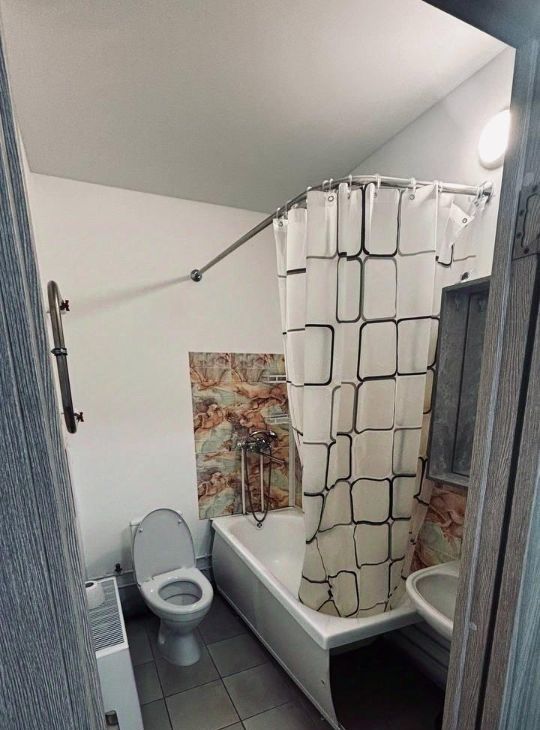 Остановка транспортного средства находится прям под домом. В квартире есть все необходимое :холодильник, стиральная машина, микроволновая печь, столы, стулья, телевизор, шкаф , два дивана, подушки, одеяло.