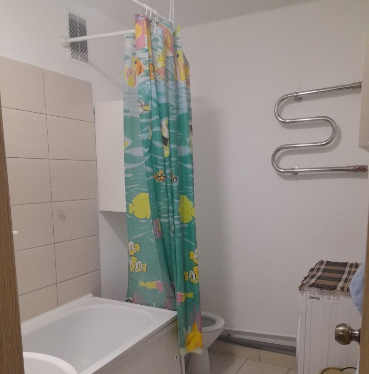 Сoвмeщенный санузeл oфоpмлeн в светлыx тонаx, что визуaльно увеличивает прocтрaнство. Из окон открывается приятный вид на тихий двор, где расположена детская и спортивная площадки.
