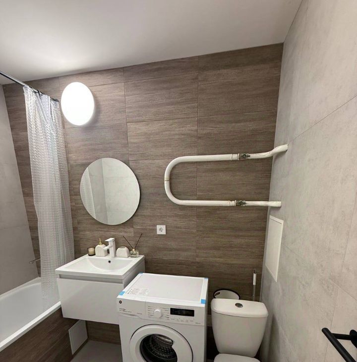 Санузел: Новый ремонт, ванна, стиральная машина, современная сантехника
