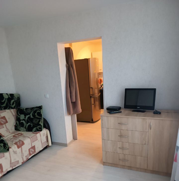 В квартире проведен косметический ремонт, есть вся необходимая мебель как в комнате, так и на кухне. Для вашего удобства установлены кондиционер, холодильник и стиральная машина. Санузел совмещенный, оборудован ванной.