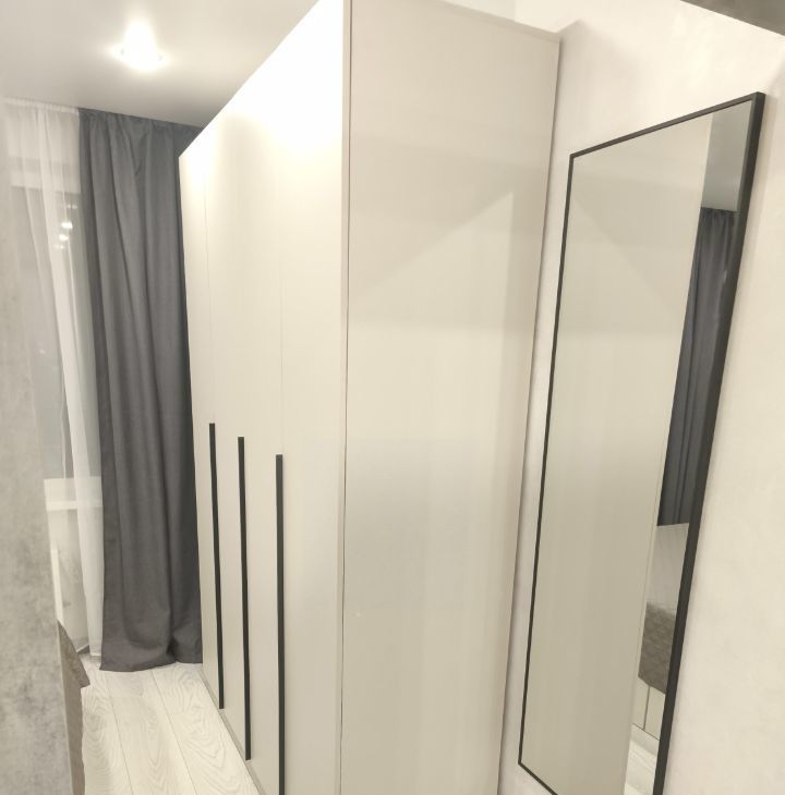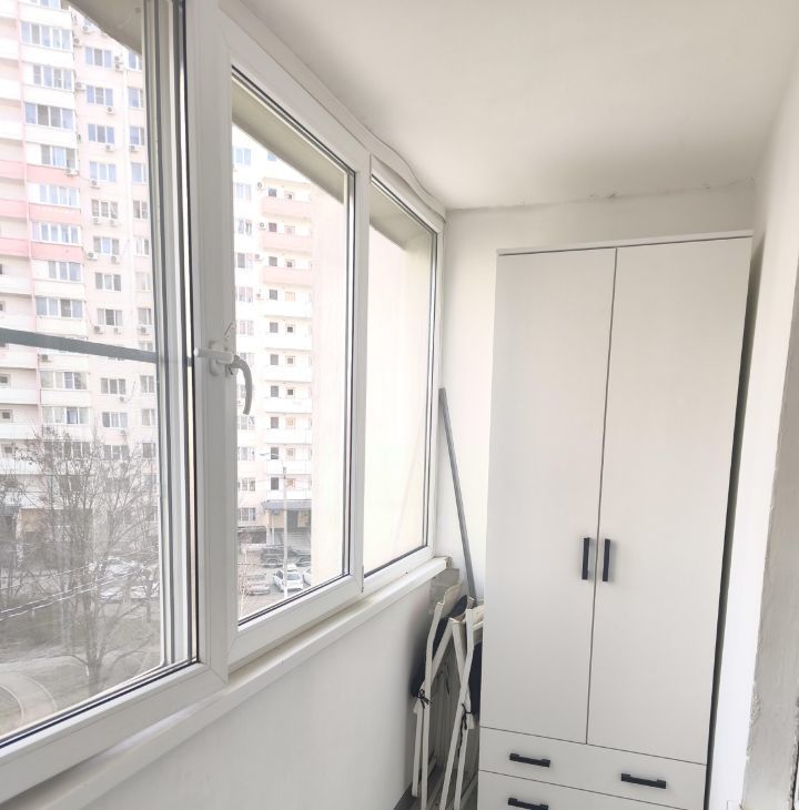В квартире очень много систем хранения: Четырехстворчатый шкаф в комнате, комод, под кроватью ящики, шкаф в прихожей, шкаф на балконе. Всё новое.