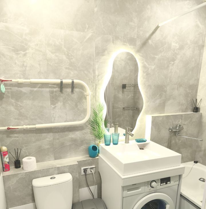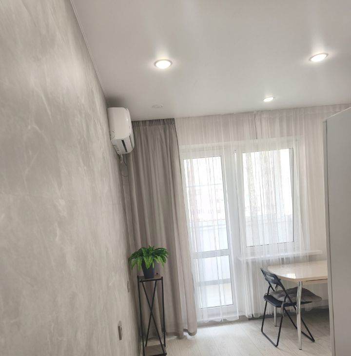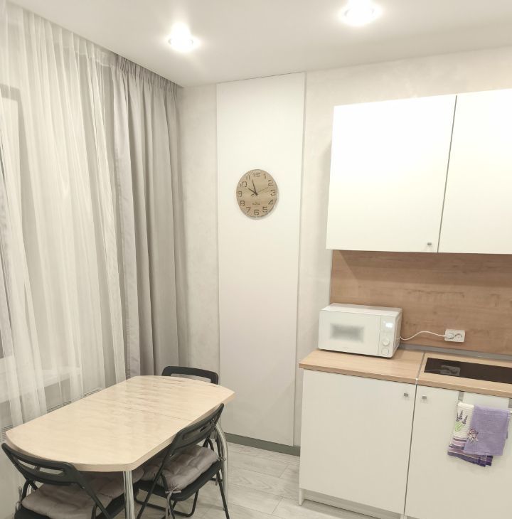 Установлена техника: стиральная машина, холодильник, микроволновка, варочная панель, смарт ТВ и сплит система на 40 кв м, охлаждает всю квартиру полностью. Есть гладильная доска и утюг.