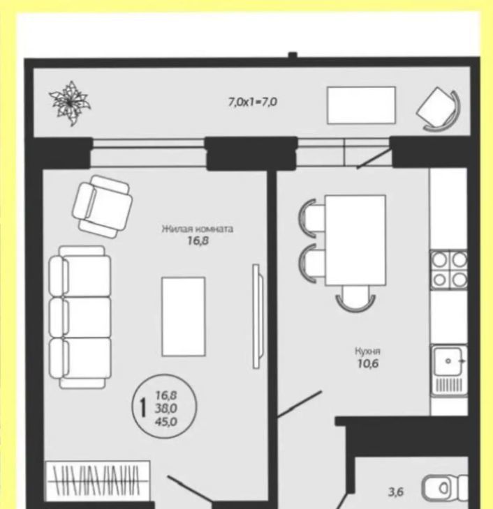 1-к кв. Краснодарский край, Краснодар ул. Имени Дмитрия Благоева, 31к1 (38.0 м²)