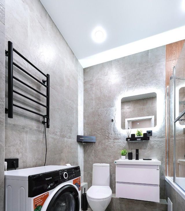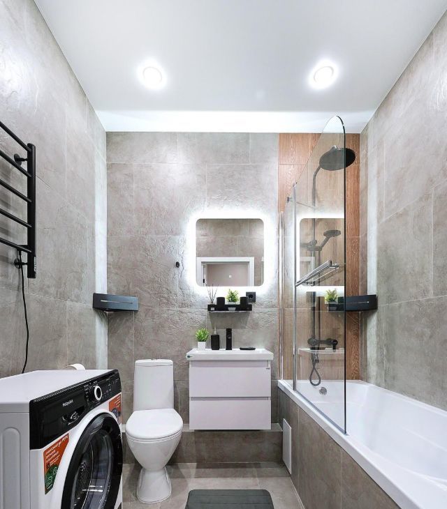 • Санузел: Современный санузел с новой сантехникой, ванна со стекляной перегородкой, стиральной машиной и полотенце сушутелем . Стены отделаны керамогранитом, что обеспечивает легкий уход.