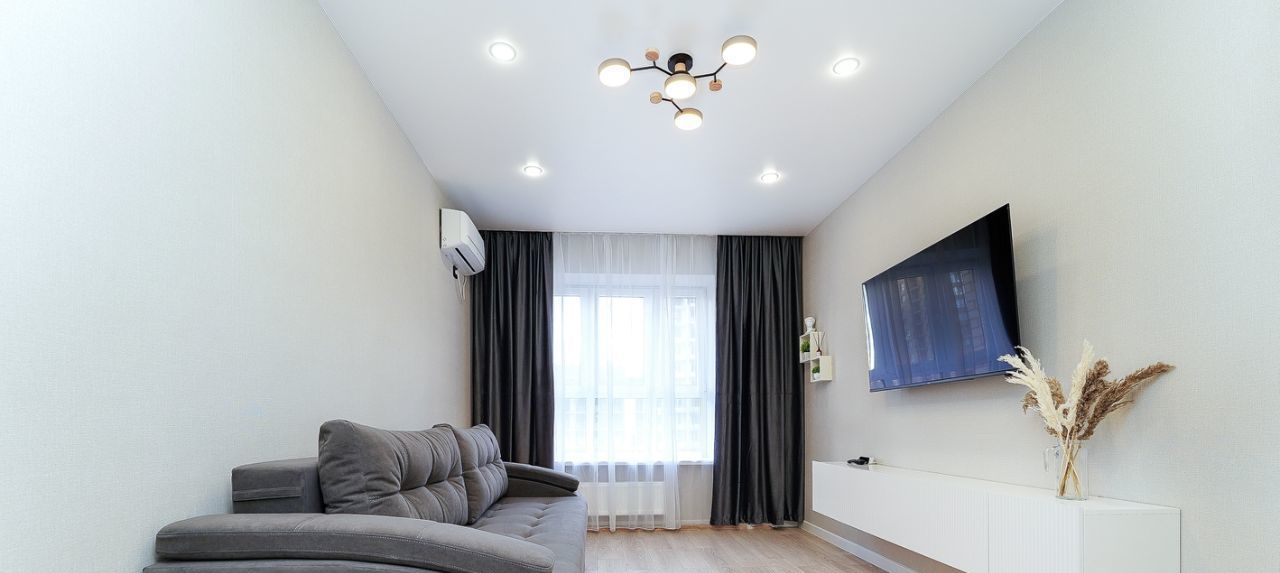 • Комната: Просторная и светлая комната с качественным ремонтом, оформлена в нейтральных тонах. Большие окна обеспечивают отличное естественное освещение. Телевизор 55 диагональ, сплит система, гардеробная с полками для хранения всех типов одежды и обуви.