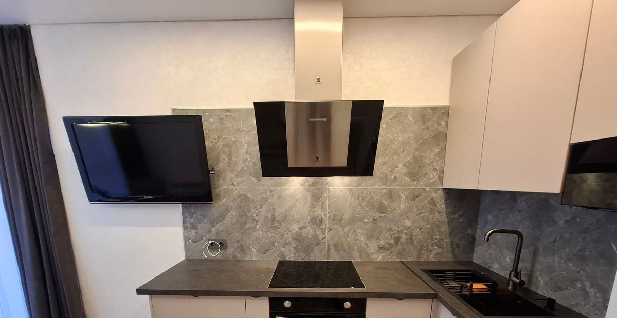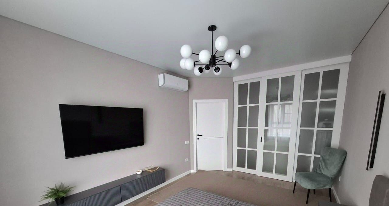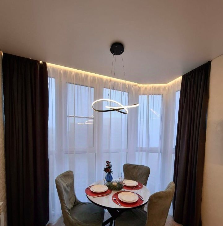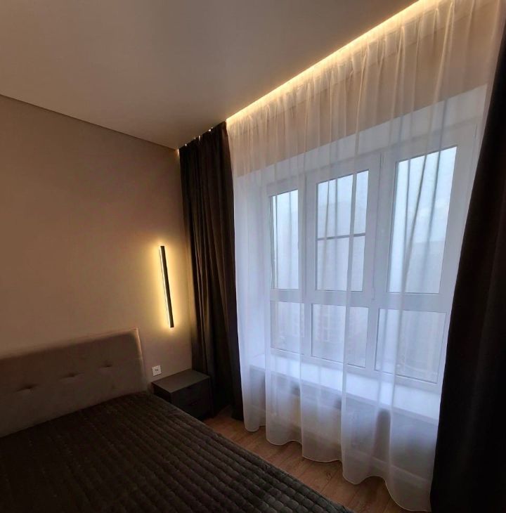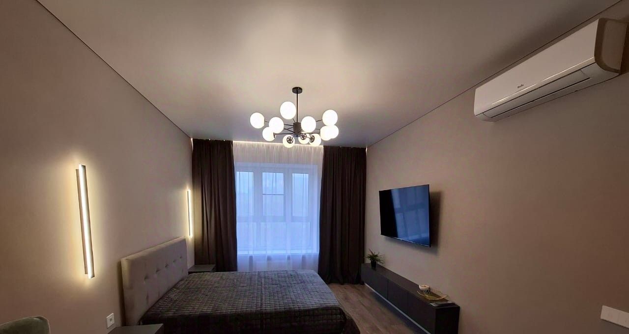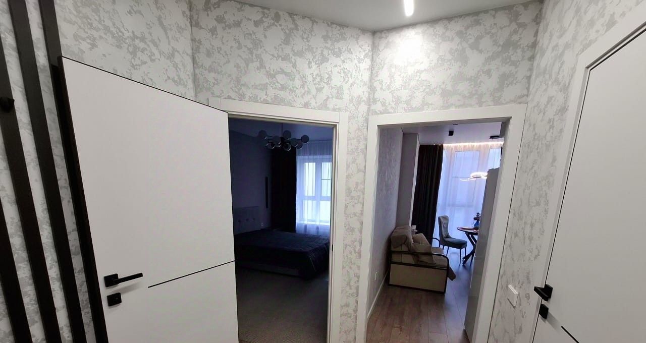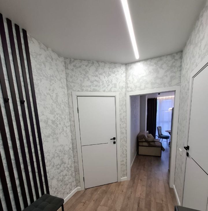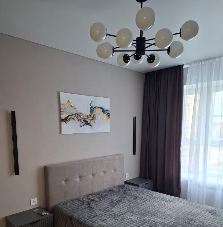 Готова к сдаче однокомнатная квартира с дизайнерским ремонтом, просторная и уютная. В квартире есть всё для комфортного проживания. Оснащена мебелью и техникой, встроенная просторная гардеробная, санузел с тёплым полом и стеной. Из витражного окна открывается красивый вид на улицу.