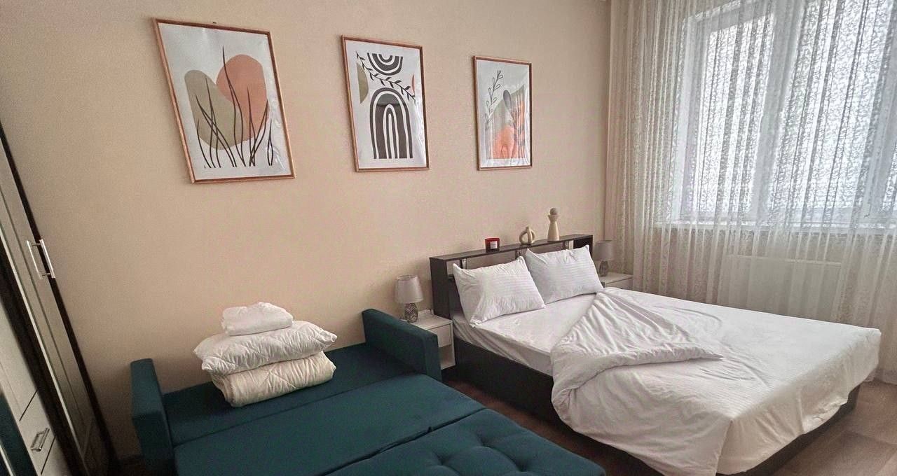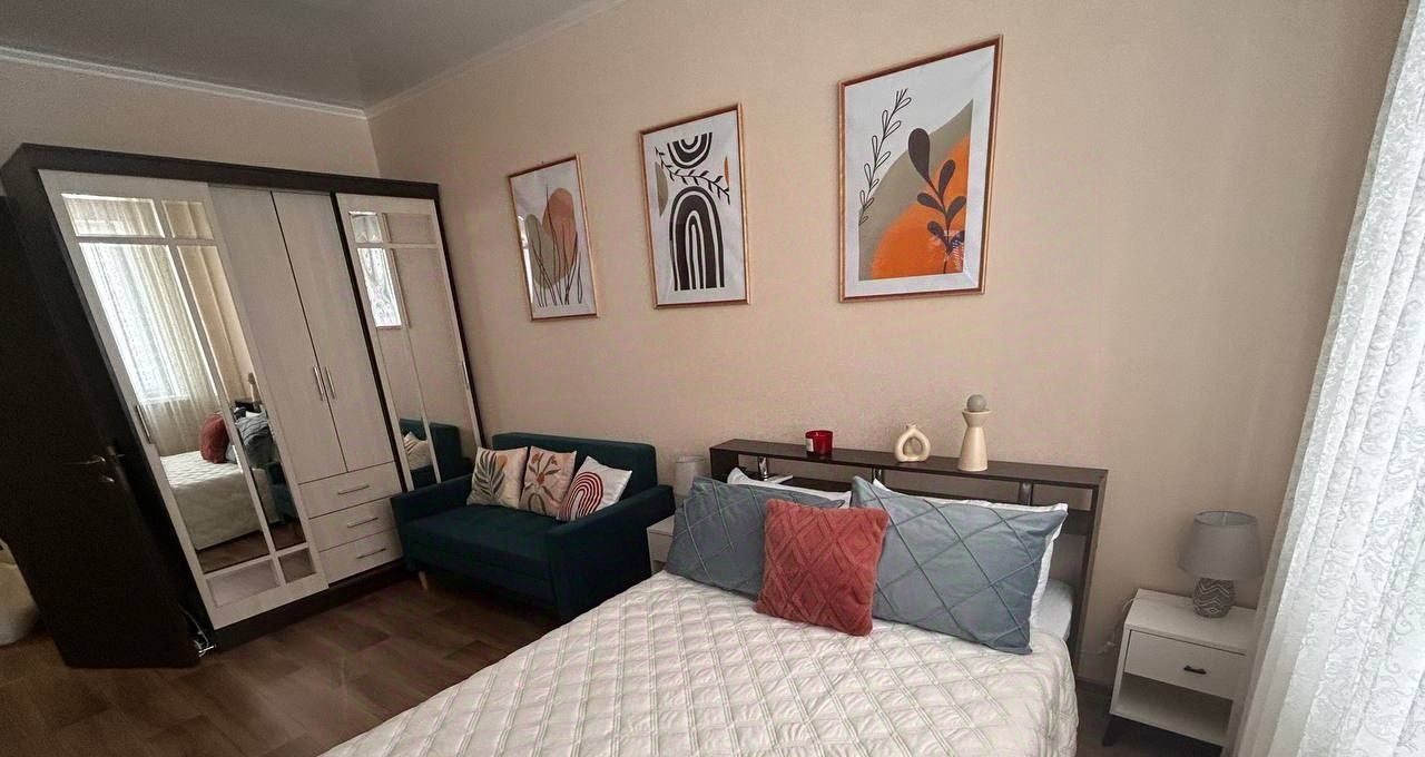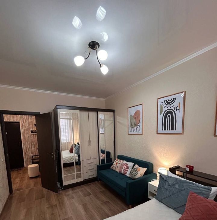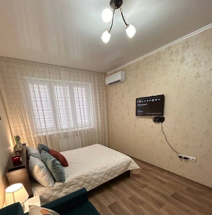 В квартире есть все необходимое для комфортного проживания: косметический ремонт, современная мебель на кухне и в комнате, а также полный комплект бытовой техники — кондиционер, холодильник, телевизор и стиральная машина. Планировка включает в себя совмещенный санузел с ванной и один балкон, где можно отдохнуть после рабочего дня. Интернет подключен, поэтому вы всегда будете на связи.